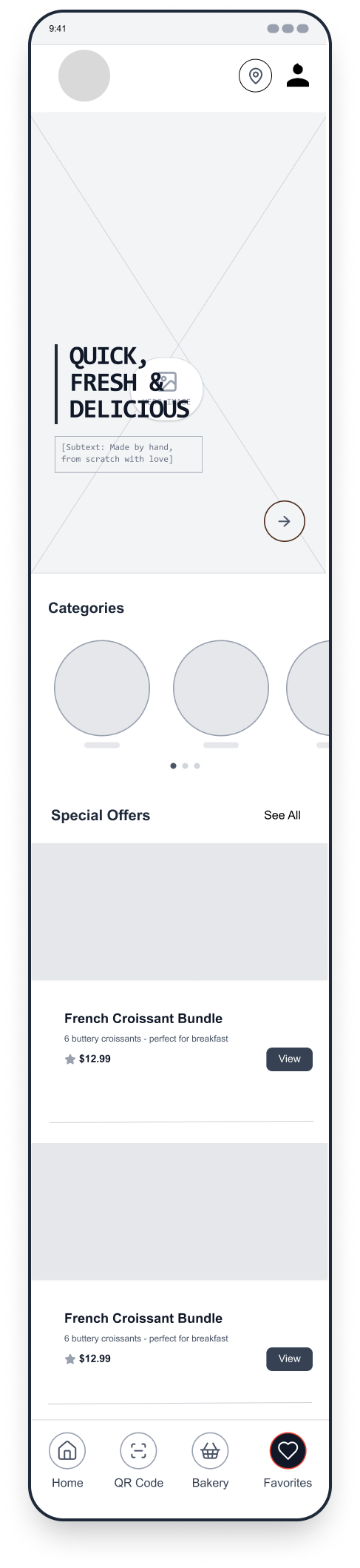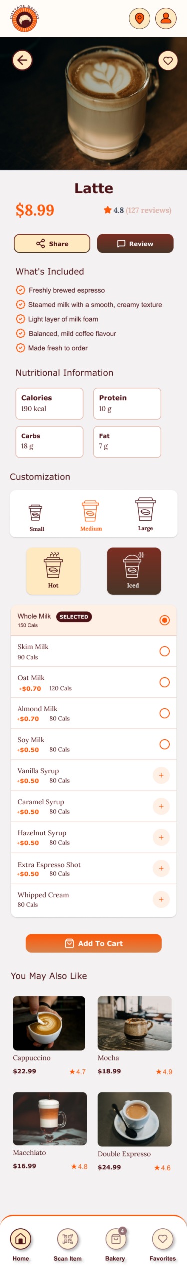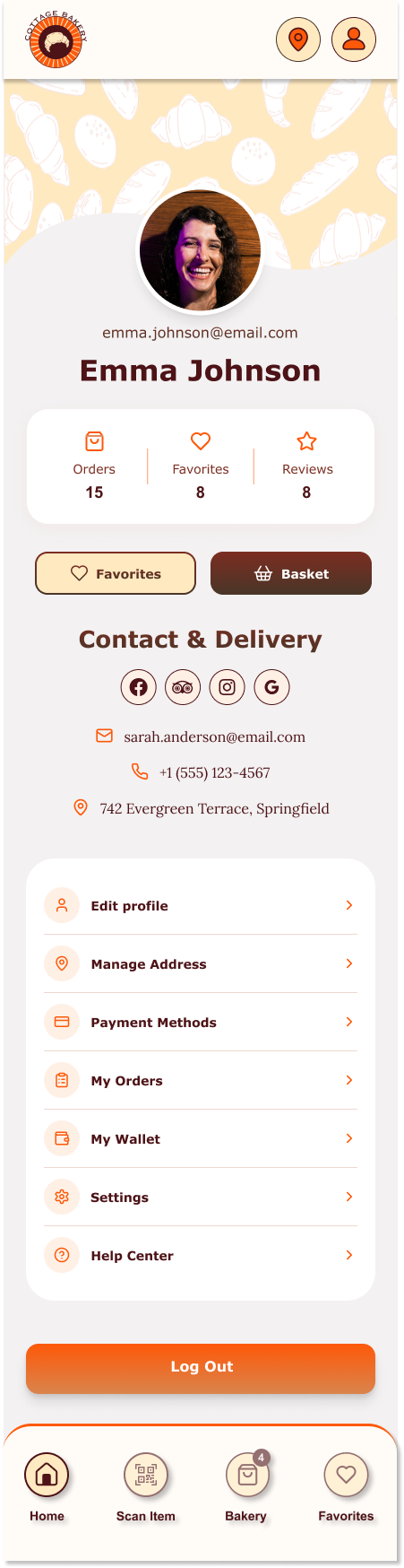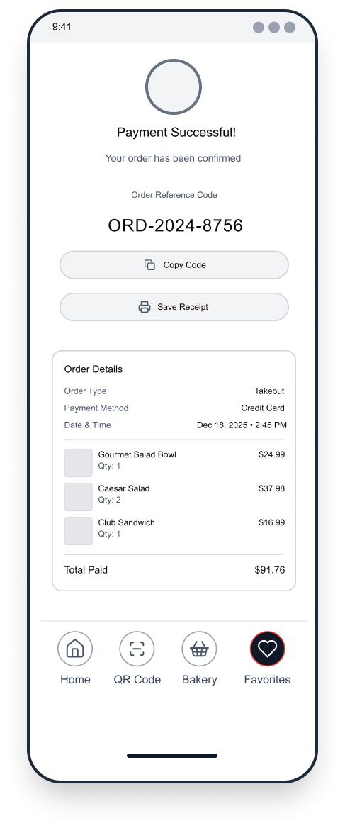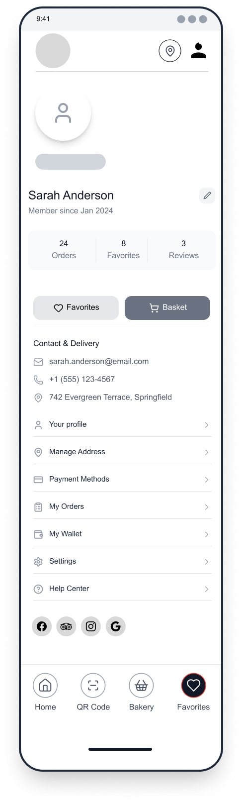 To reduce congestion and improve service flow, the app would allow customers to place advanced takeout orders, select pickup times, and avoid long wait periods inside the bakery. Integrated stock management features would notify users when certain items are sold out, helping set accurate expectations and preventing disappointment.