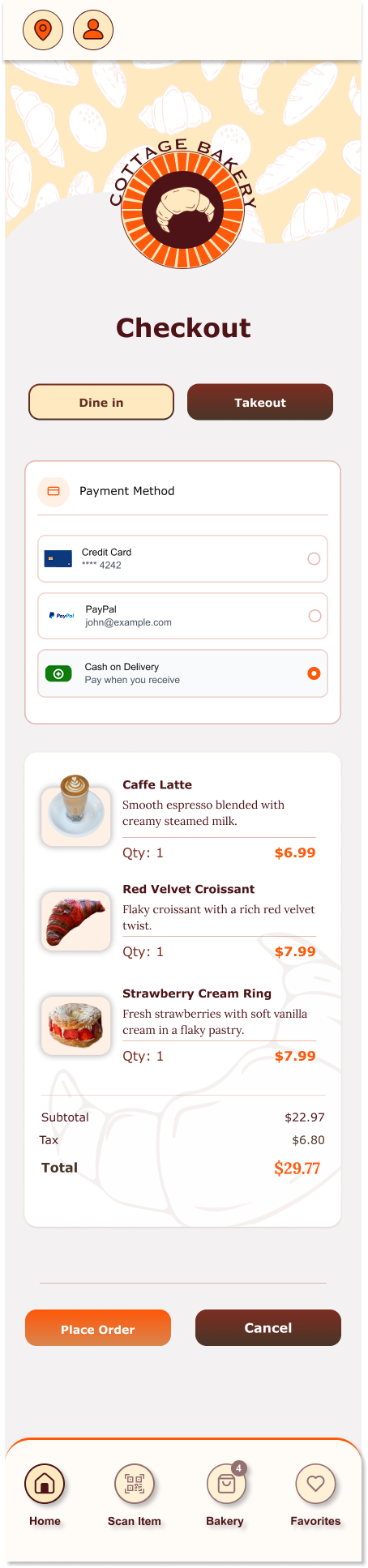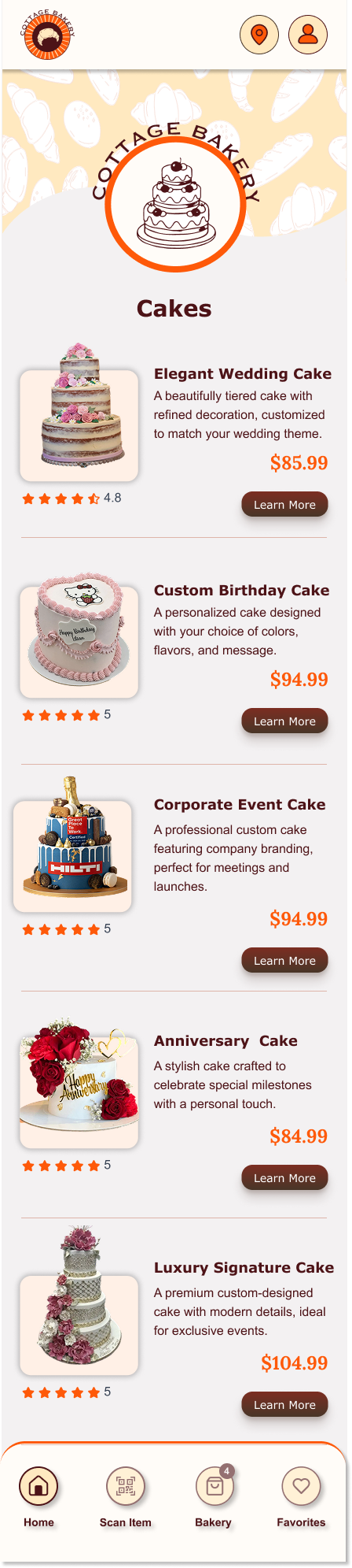 Bakery Menu & Ordergin Mobile App