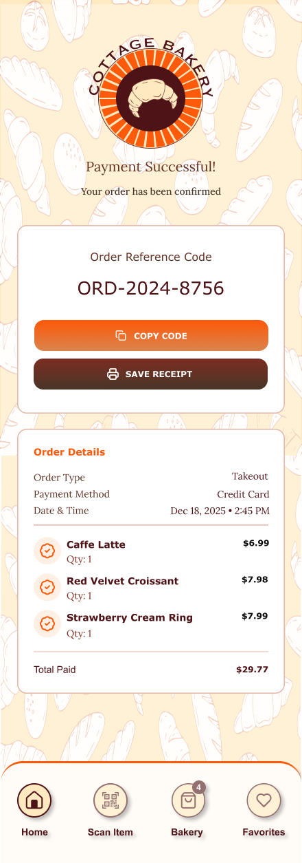 A dedicated menu and ordering mobile app can address the key challenges facing Cottage Bakery + Eatery by providing customers with a structured, accessible, and convenient digital experience. The app would present the bakery’s broad menu—including pastries, breads, drinks, and eatery dishes—in a clear and well-organized format that supports user accessibility and easy navigation.
